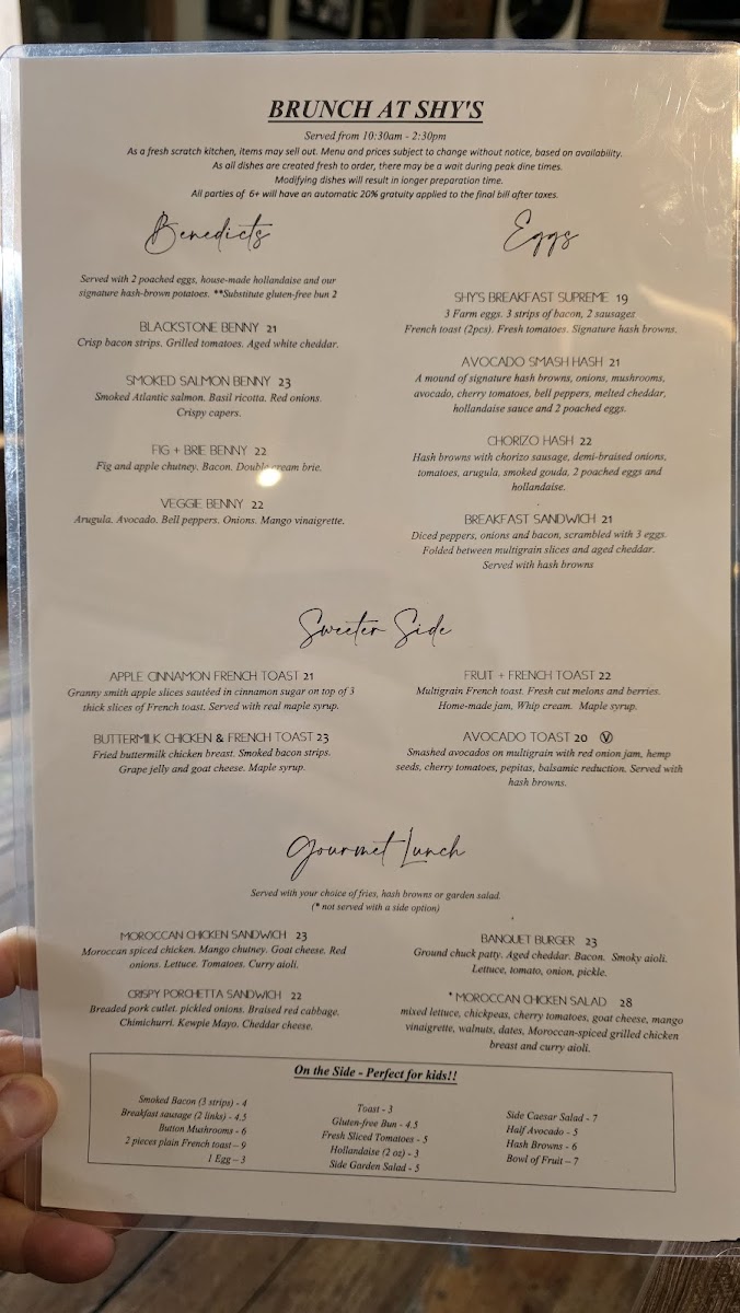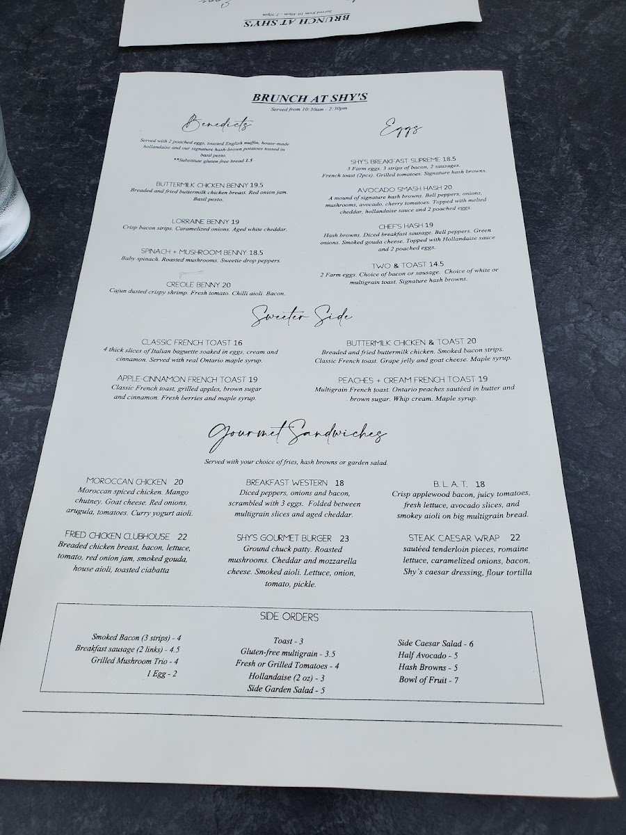 Welcome to Shy's Place Restaurant, a culinary gem nestled in Dundas, Ontario. This charming eatery offers an inviting atmosphere perfect for any meal of the day. The menu features a delightful array of dishes, each crafted with care.